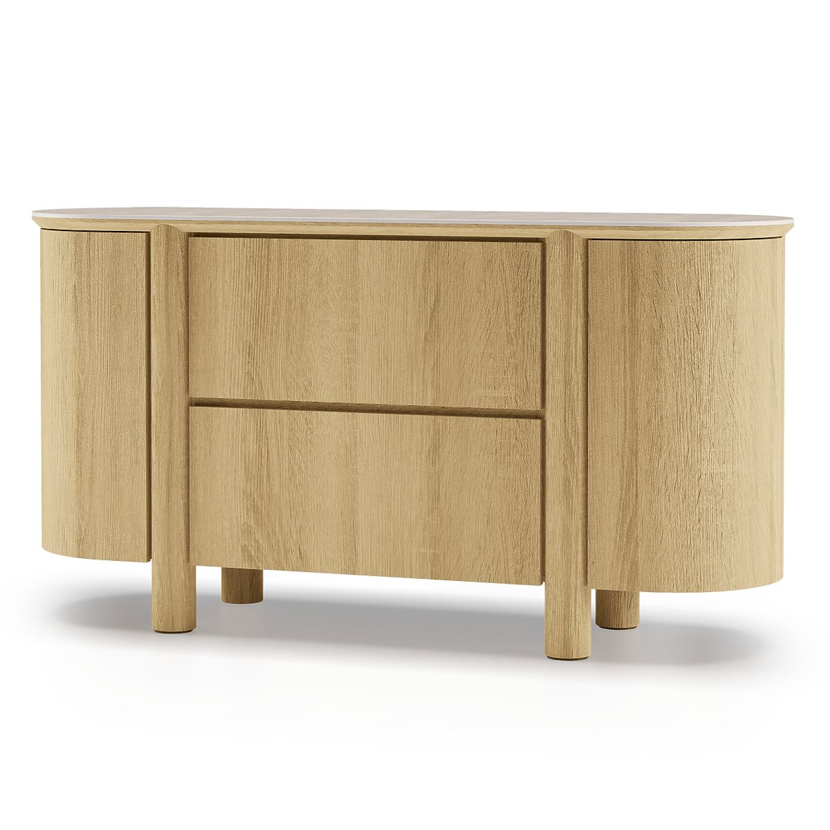 Lukahome.si » Pohištvo / Komode / Dvovratna komoda s predali Segretto, zaobljena, naravni hrast, travertin