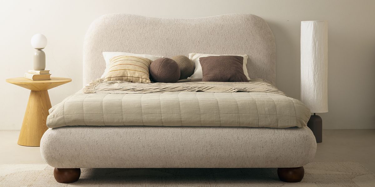 Oblazinjena postelja Bowee s podstavkom v svetlo bež barvi. .. več