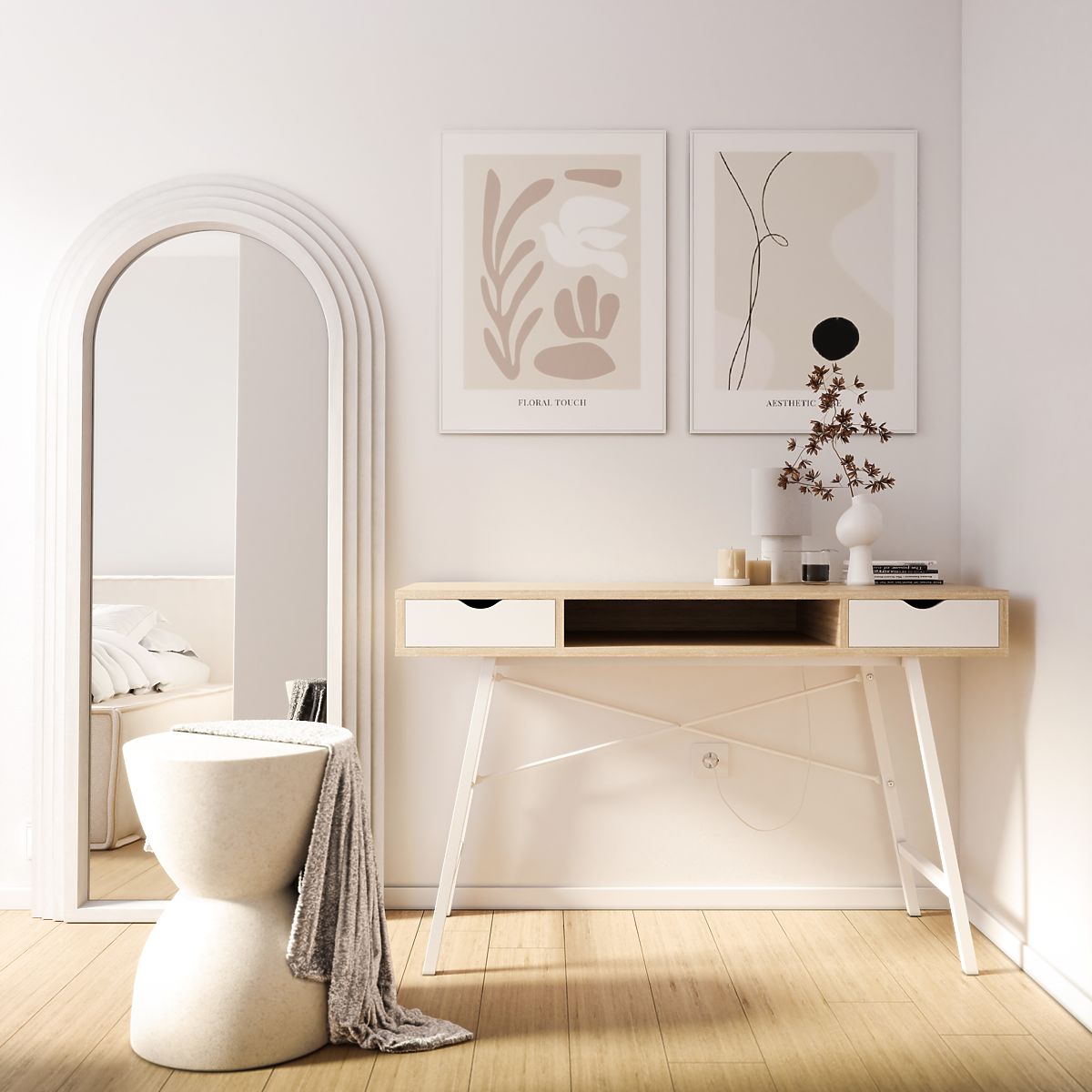 Lesen okvir v obliki loka z belo površinsko obdelavo. .. več