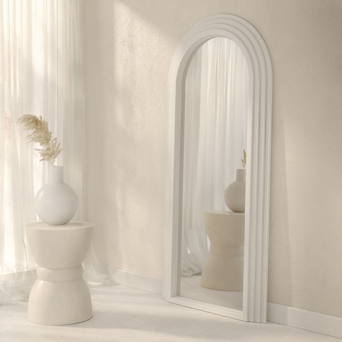 Lukahome.si » Okrasitev / Ogledala / Dekorativno viseče ogledalo Giovanni 170x80 cm, belo, zaobljeno