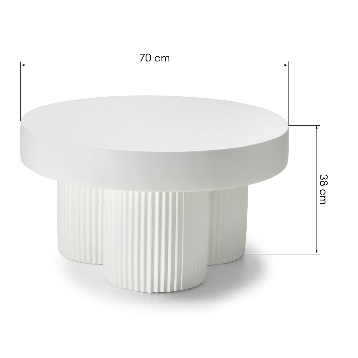 Okrogla bela miza Salerno z rebrastim vzorcem in premerom 70 cm. .. več