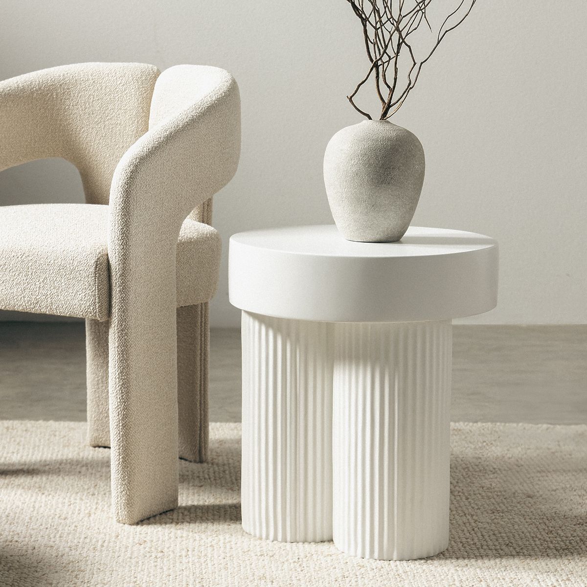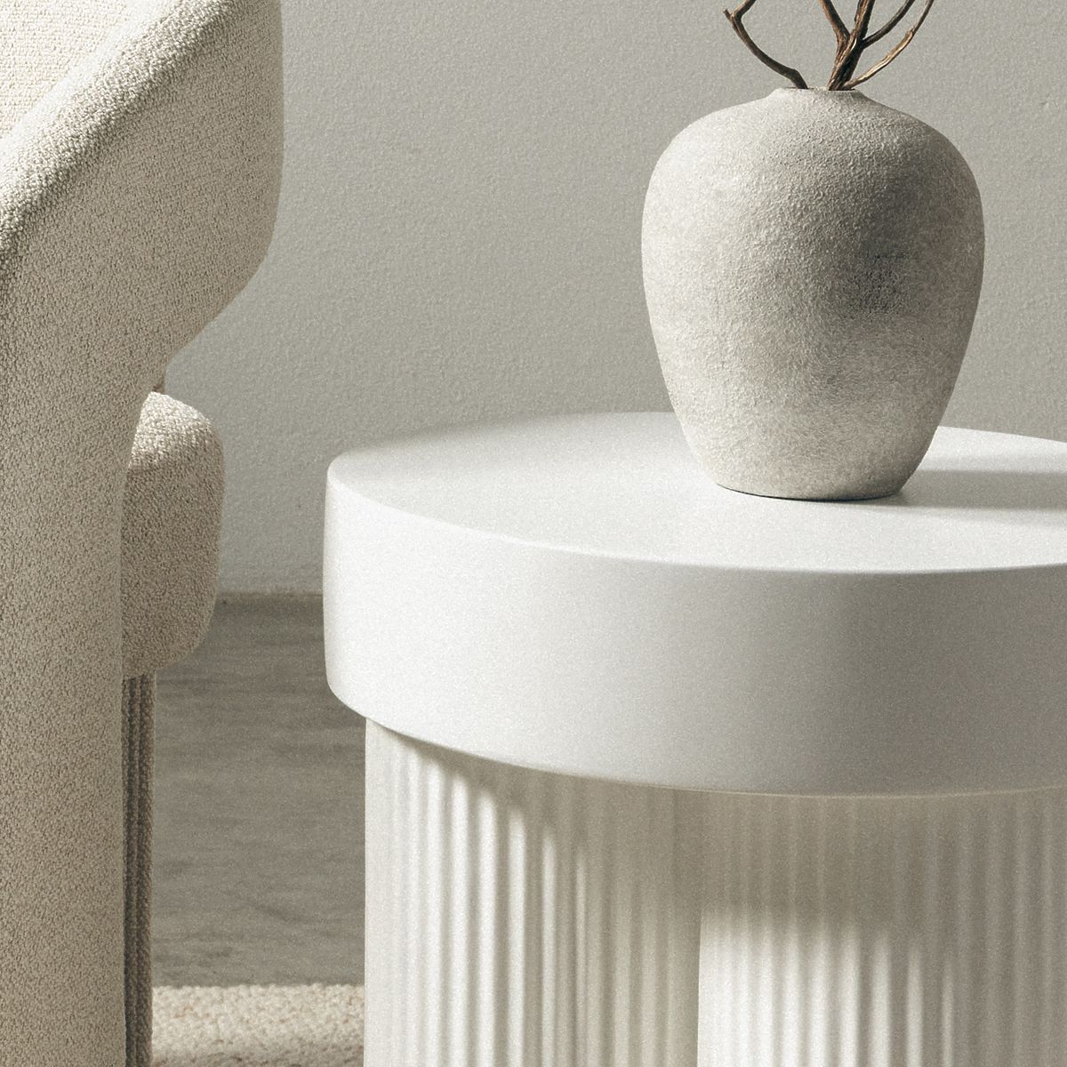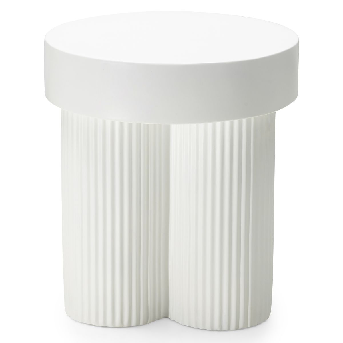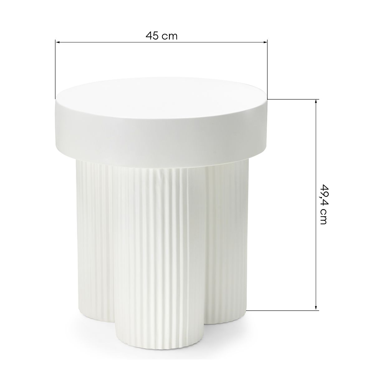 Okrogla bela miza Salerno z utori in premerom 45 cm. .. več