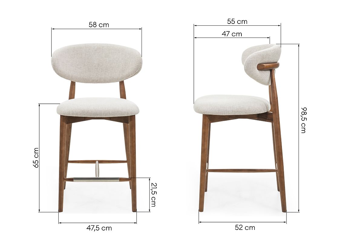 Barski stol Larnaca je popolna kombinacija modernega dizajna in elegance, ki se prilega vsakemu interierju. Bež tkanina na sedežu in naslonjalu zagotavlja udobje in prijeten značaj, medtem ko konstrukcija iz jesenovega lesa v toplem rjavem odtenku prinaša naravni čar. Odlično se prilega kuhinji, jedilnici ali barskemu prostoru. Njegov stilski videz in trdna konstrukcija zagotavljata zanesljivost za mnoga leta, edinstven dizajn pa dodaja vsakemu prostoru značaj in toplino. Naročite si barski stol Larnaca in dodajte svojemu interierju nov, edinstven videz že zdaj!