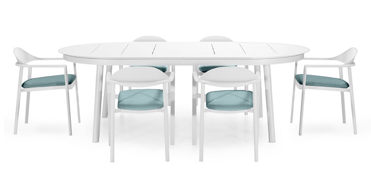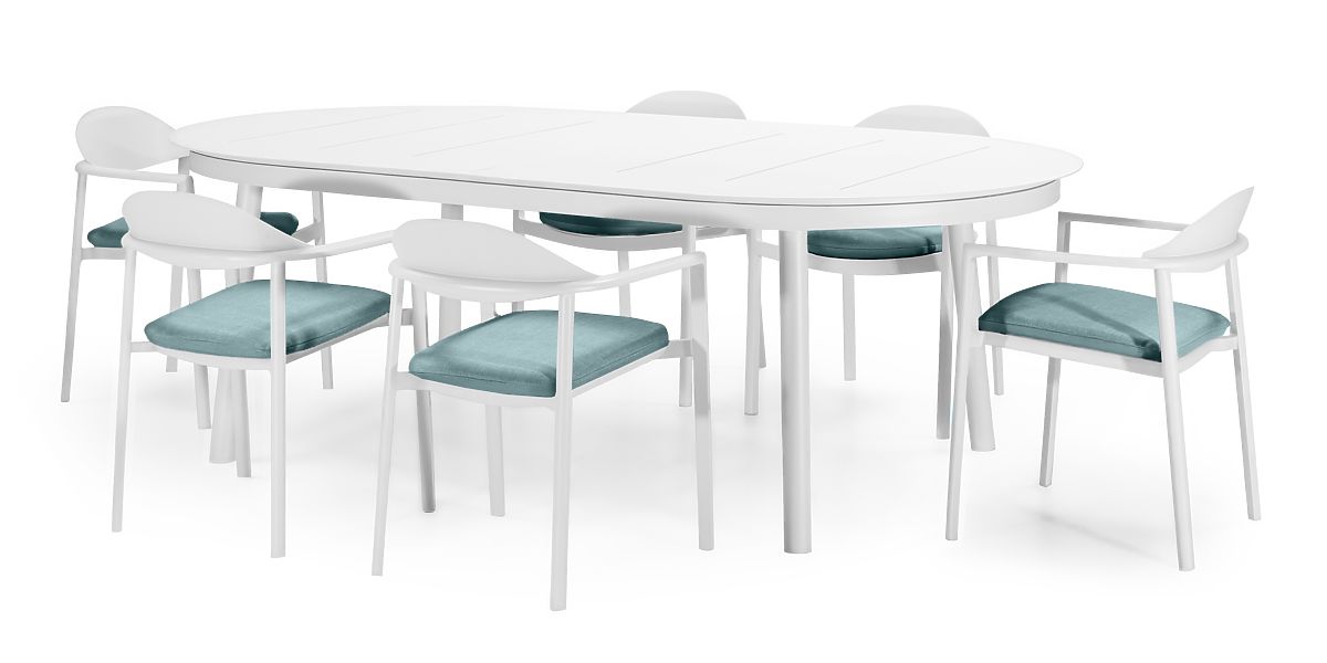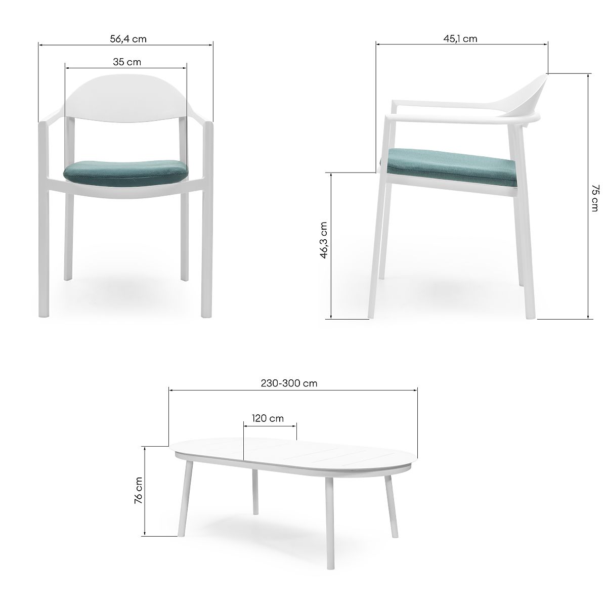 Lukahome.si » Vrtovi / Vrt pohištvo / Vrtni set Marinelli, raztegljiva miza 230-300 cm + 6 stolov, aluminij, bela