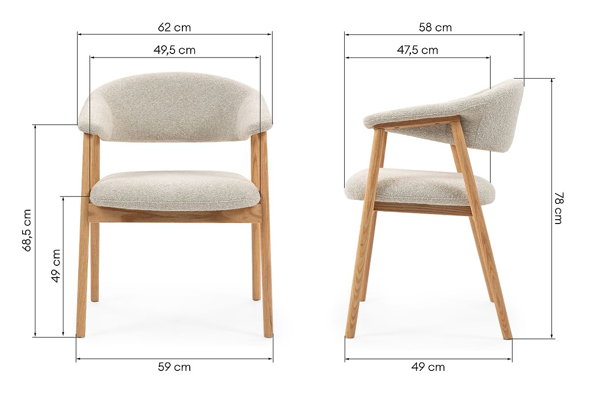 Stol Capri je esenca moderne elegance z dotikom domačnosti. Uporaba visokokakovostnega svetlo bež oblazinjenja mu ne daje le plemenitega videza, temveč zagotavlja tudi izjemno udobje pri vsakodnevni uporabi. Topel, nevtralen odtenek materiala nežno poživi prostor in se odlično ujema z različnimi notranjimi aranžmaji. Mehko zaobljena oblika stola vabi k sprostitvi, ergonomske oblike pa poudarjajo njegov uporabni značaj. Stabilnost in trpežnost zagotavlja trdna osnova iz masivnega hrasta – naravni les prinaša v notranjost brezčasen čar in občutek kakovosti. Precizna dodelava vsakega detajla priča o skrbni obdelavi in skrbi za estetiko. Capri se odlično obnese tako pri jedilni mizi, v bralnem kotičku, kot tudi kot stilski dodatek domače pisarne. Je pohištvo, ki ne le lepo izgleda, ampak tudi zagotavlja udobje dolga leta.