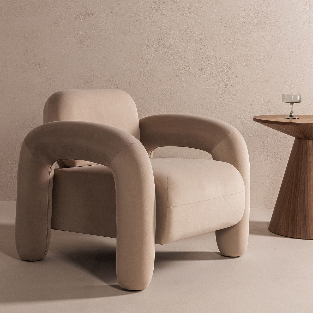 Stol Vico s svetlo bež žametno oblazinjenostjo za popolno sprostitev. .. več