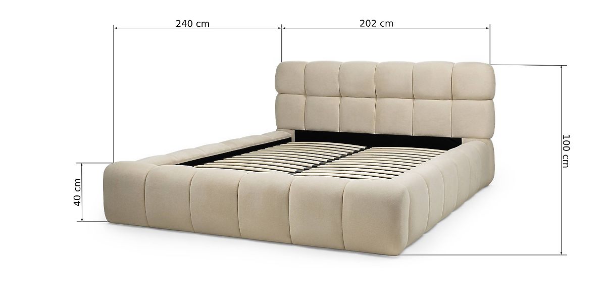 Lukahome.si » Postelje / Zakonski postelje / Postelje 160x200 / Oblazinjena postelja Nexo 160x200 cm, z letvami in shranjevalnim prostorom, svetlo bež, zaobljenih o