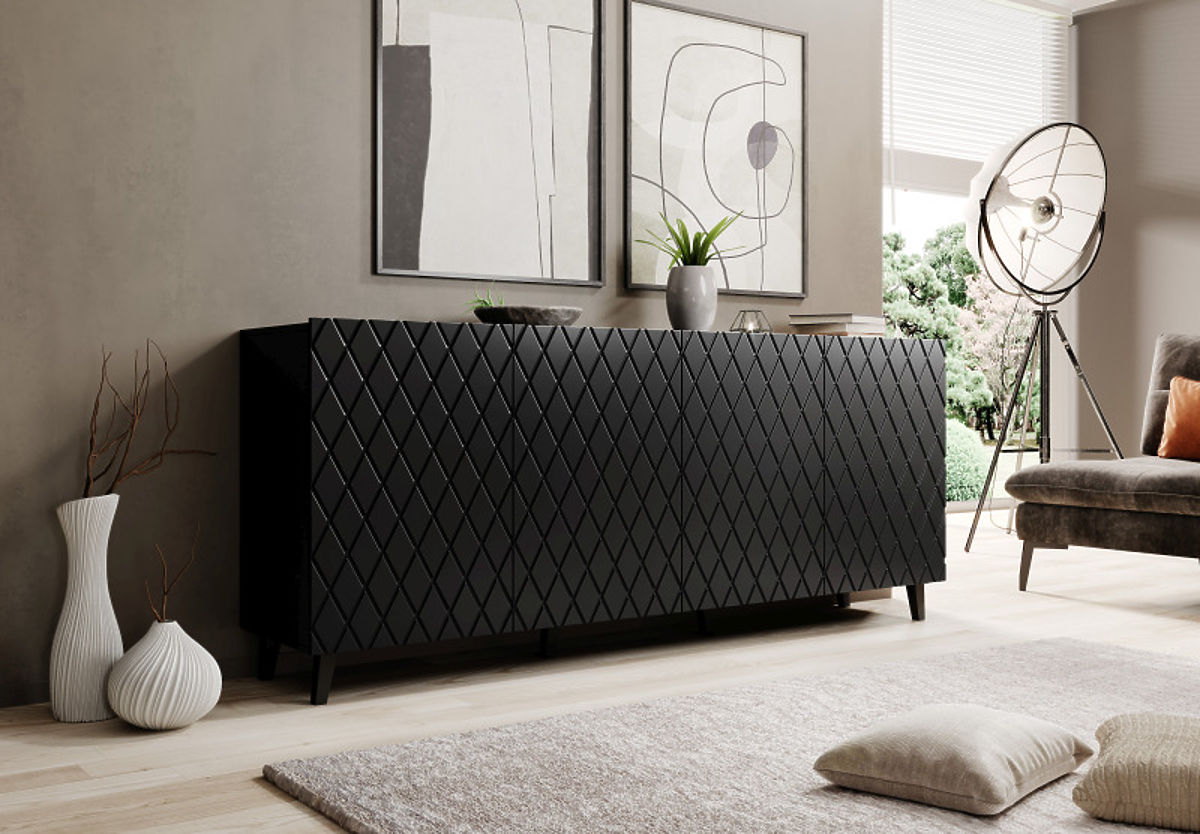Komoda ASTI z mat črnim zaključkom in brez ročajev. .. več