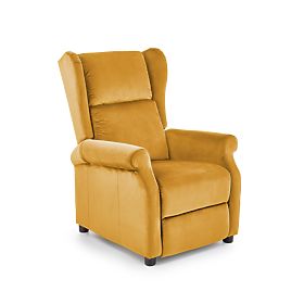 Elegantni in udobni raztegljivi naslanjač AGUSTIN 2 je odlična izbira za sprostitev v dnevni sobi. Elegantna žametna prevleka v modni gorčični barvi dodaja notranjosti svežino in izrazit oblikovalski element.Mehak sedež, visok naslon z bočnimi "ušesi" in praktični nasloni za roke zagotavljajo maksimalno udobje pri sedenju. Zahvaljujoč raztegljivi funkciji in izvlečnemu podnožju si lahko privoščite popoln počitek ali kratek spanec čez dan.