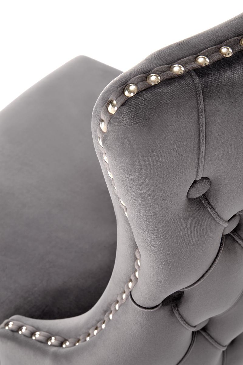 Stol iz masivnega lesa in žametne tkanine v sivi barvi. .. več