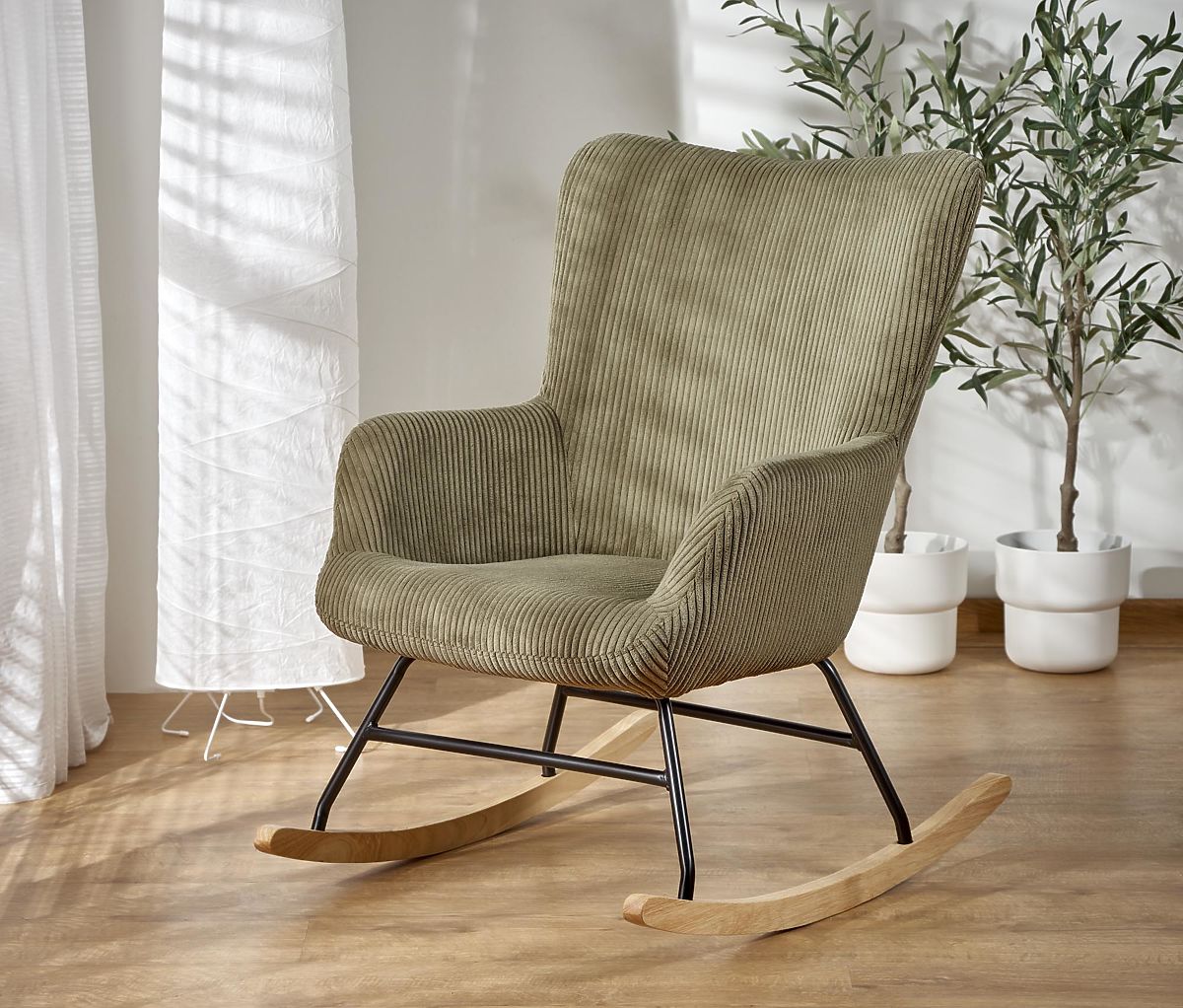 Počivalni stol z gugalno funkcijo v olivni barvi. .. več