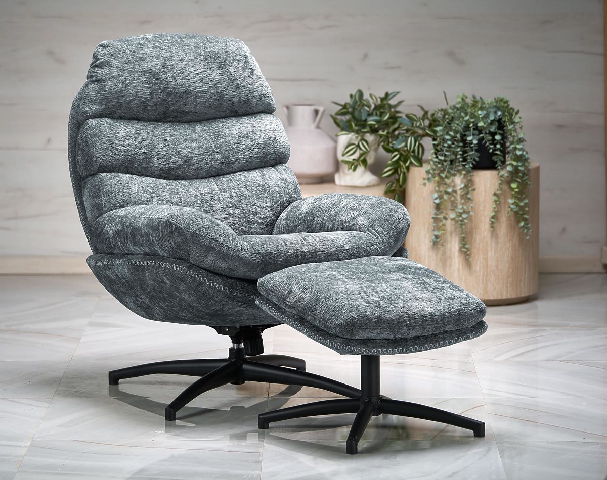 Relaksacijski stol z modrim podnožjem in funkcijo zibanja. .. več