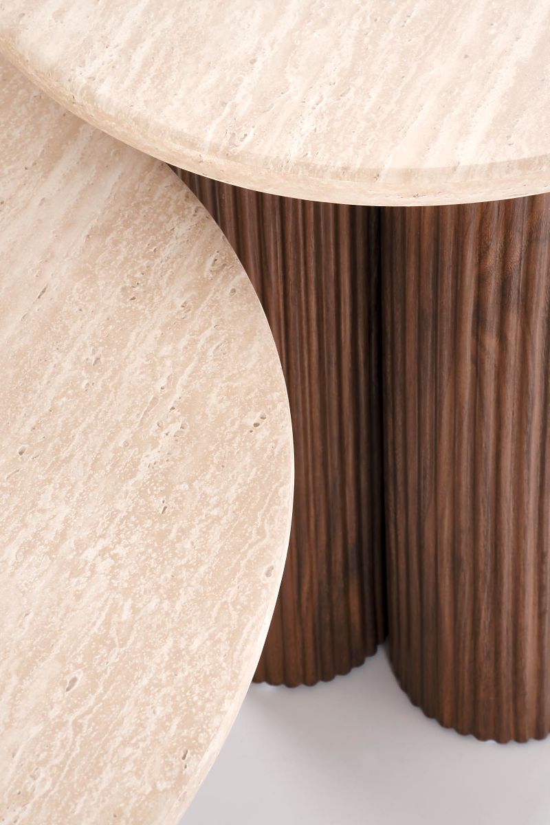 Konferenčna miza iz furnirane MDF v orehu in travertinu. .. več