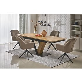 Raztegljiva miza iz naravnega furnirja in črnega jekla. .. več