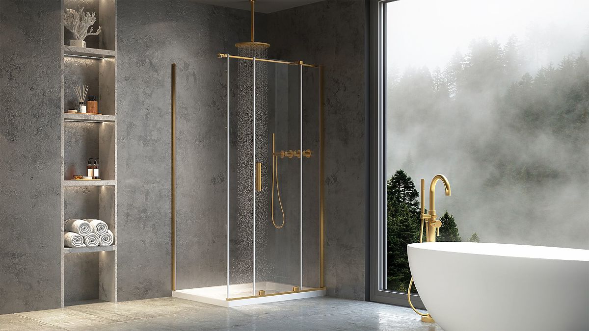 Tuš kabina Montana s drsnimi vrati in krtačenim zlatim premazom je eleganten in sodoben element vsake kopalnice. Kombinacija prozornega stekla in nežnih zlatih poudarkov dodaja luksuz in prefinjenost. Trdna konstrukcija in stilski detajli naredijo to kabino idealno izbiro za interierje s sodobnim dizajnom, ki zagotavljajo udobje pri uporabi in visoko estetiko. Ta izdelek je opremljen s premazom Easy Clean, ki olajša njegovo čiščenje.