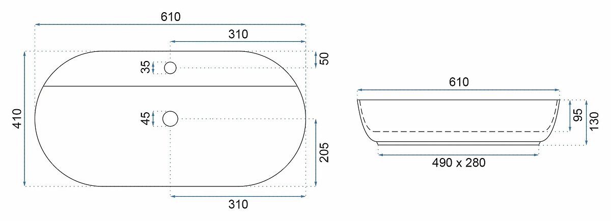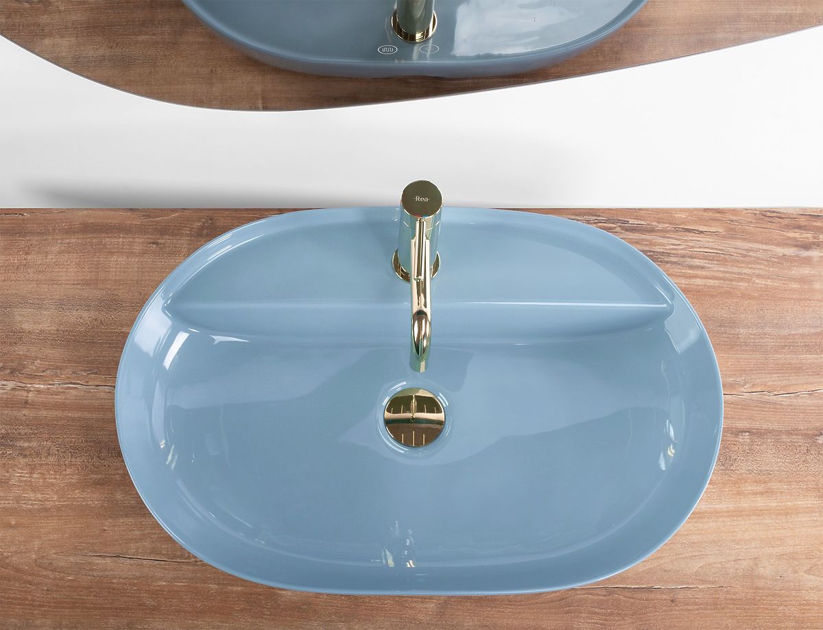 Umivalnik Rea Aura v zanimivi, eliptični obliki bo popolnoma dopolnil vsak sodoben interier. Prilagojen je za montažo na pult ali omarico. Umivalnik ni popolnoma vgrajen, ima izrez zadaj pri montažni odprtini za pipo.