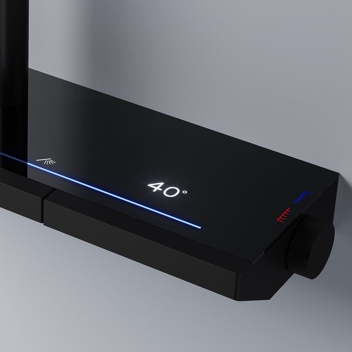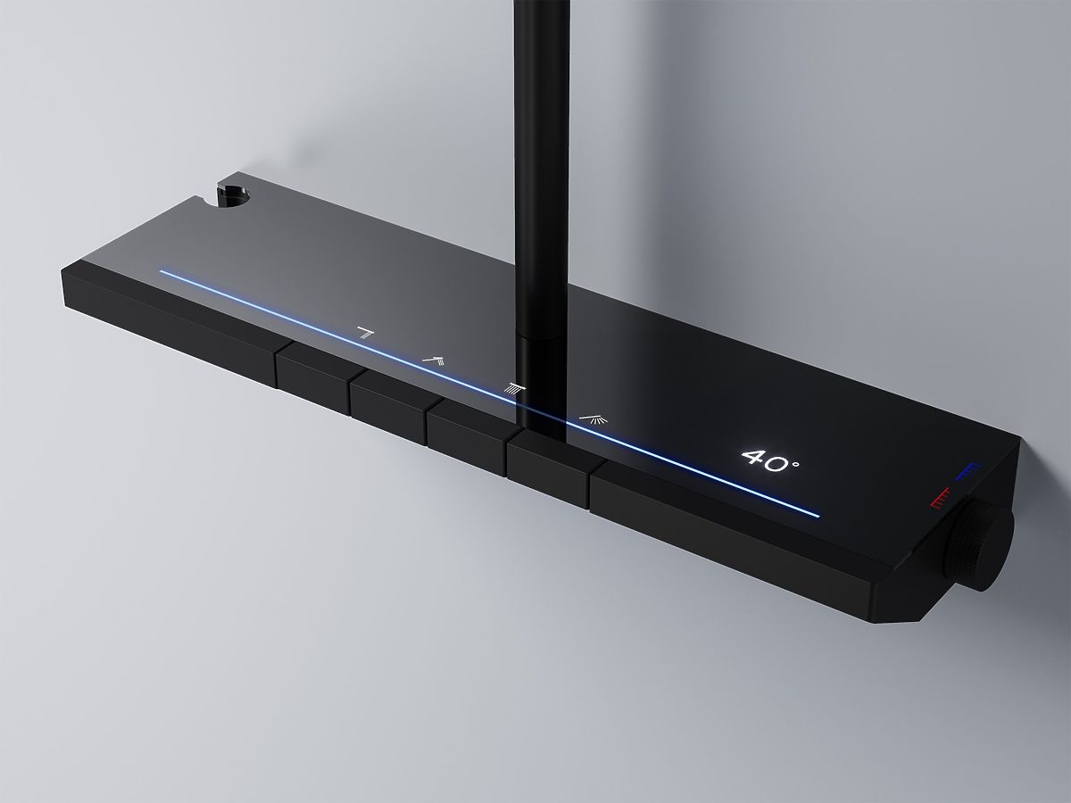 Komplet je opremljen s termostatom, intuitivno nadzorno ploščo z osvetljenimi gumbi in modernim LED zaslonom, ki prikazuje temperaturo vode – brez potrebe po priključitvi na elektriko.