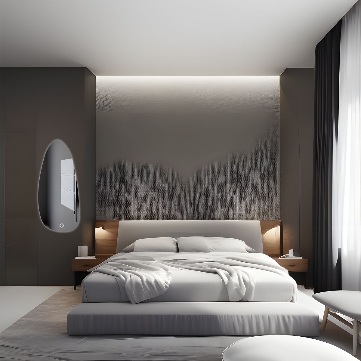 Podolgovato LED ogledalo z nepravilno obliko za sodoben dizajn. .. več