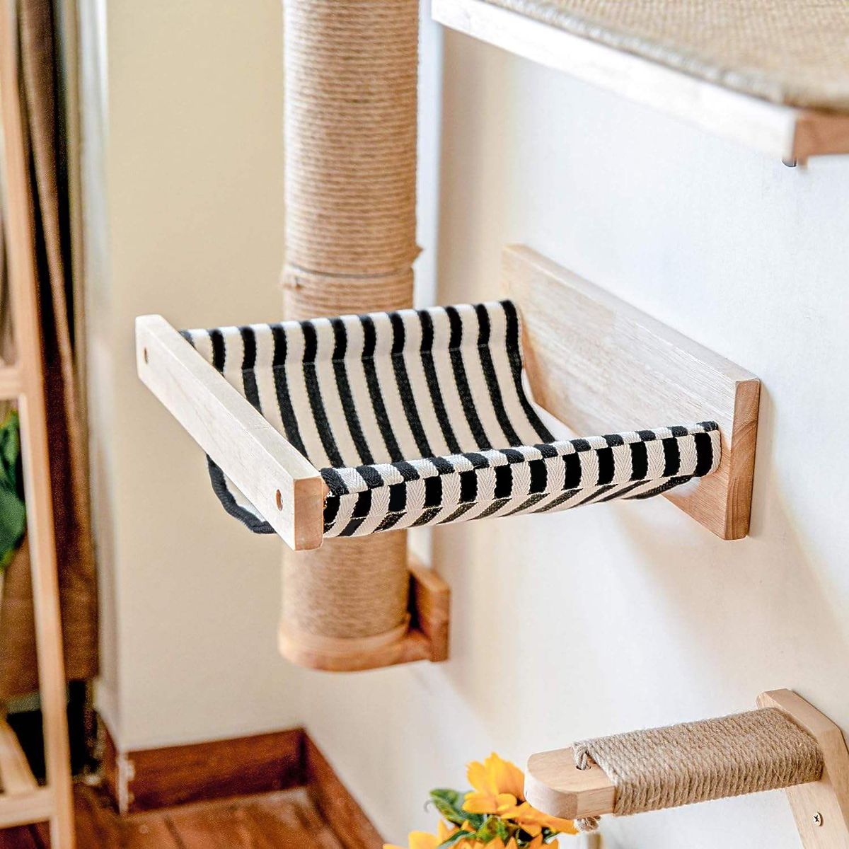 Predstavljamo vam trpežen in estetski hamak za mačke. Je idealen prostor za počitek, hkrati pa služi tudi kot prostor za igro vaše mačke. Hamak je mogoče kombinirati z drugimi elementi na steni, kar ustvari pot za naše kosmate štirinožne prijatelje. Zaradi uporabe visokokakovostnih materialov je hamak trpežen tudi za velike mačke.