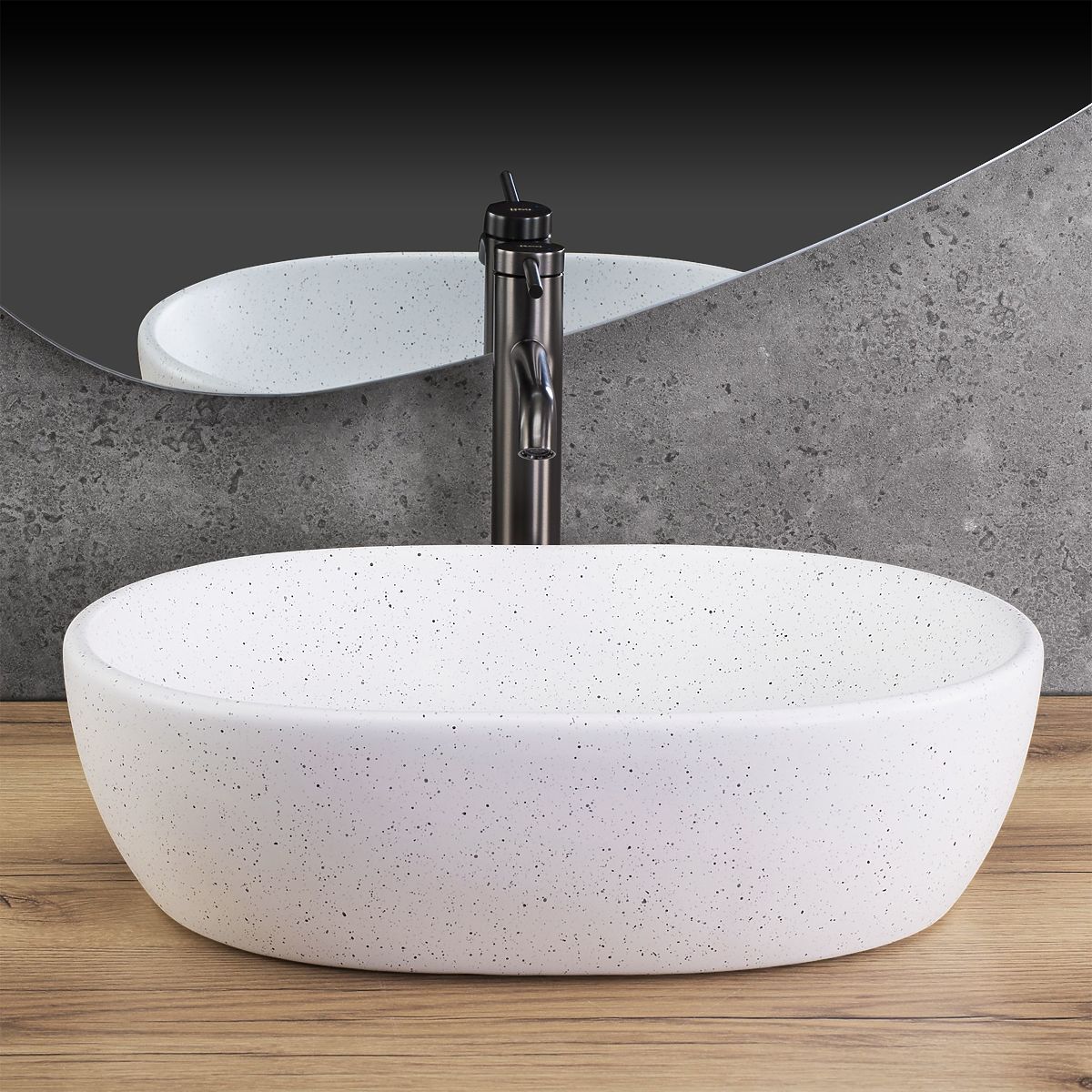 Odsotnost odprtine za pipo omogoča uporabo stoječe ali podometne armature, kar zagotavlja popolno svobodo pri oblikovanju umivalniške cone. Ta umivalnik je harmonična kombinacija narave, moderne oblike in trdne izdelave.