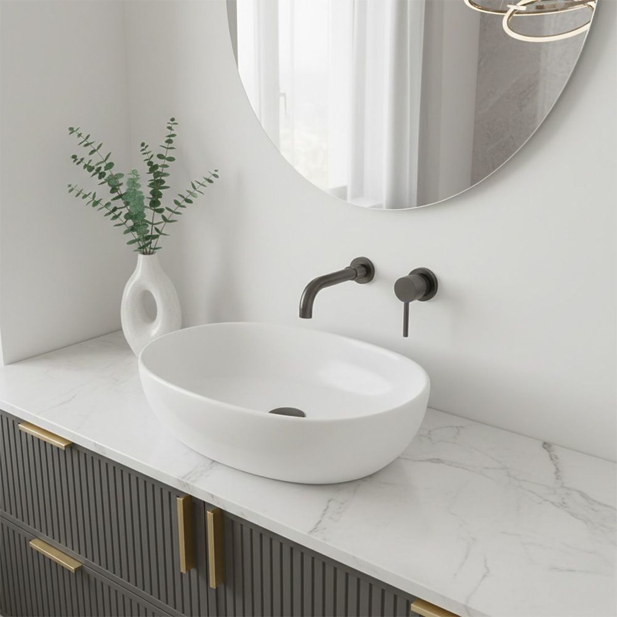 Vgradna umivalniška armatura Lungo je elegantna rešitev, ustvarjena z mislijo na moderne kopalnice, kjer sta estetika in funkcionalnost ključnega pomena. Tanka izlivna cev v kombinaciji z minimalistično ročico poudarja brezčasni značaj armature in se popolnoma ujema s stenskimi in vgradnimi umivalniki.
