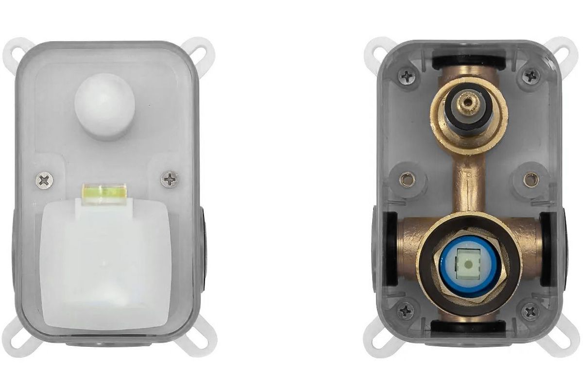 Dodatna prednost kompleta je sistem Box, ki omogoča hitro in udobno montažo podometne armature. Izdelan je iz plastike in medeninastih elementov, kar zagotavlja zanesljivost in dolgo življenjsko dobo. Box je opremljen s pokrivnim delom, ki ščiti notranje elemente med montažo, vgrajena vodna tehtnica pa omogoča natančno nastavitev. Sistem prav tako olajša dostop do notranjih komponent po namestitvi, kar omogoča enostavno in brezskrbno vzdrževanje.