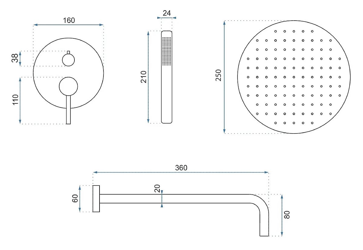 Set je izdelan iz visokokakovostnih materialov, zaradi česar njegovi elementi ohranjajo eleganten videz več let. Glavna prha zagotavlja sproščujoč vodni tok, medtem ko tanka ročna prha zagotavlja udobje pri vsakodnevni uporabi.