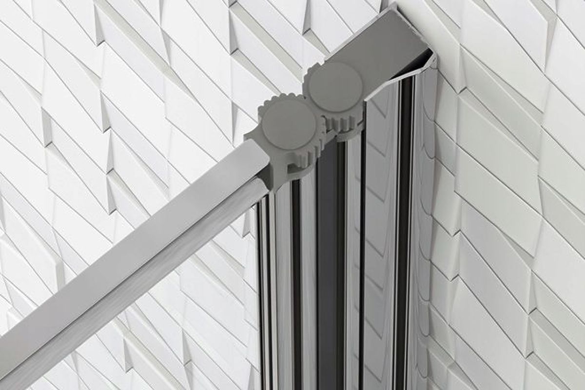 Inovativna in univerzalna pregrada se zaradi 5-krilne konstrukcije popolnoma prilagodi vsaki obliki kadi. Tehnološko napredni tečaji omogočajo popolno zložitev vseh kril k steni.