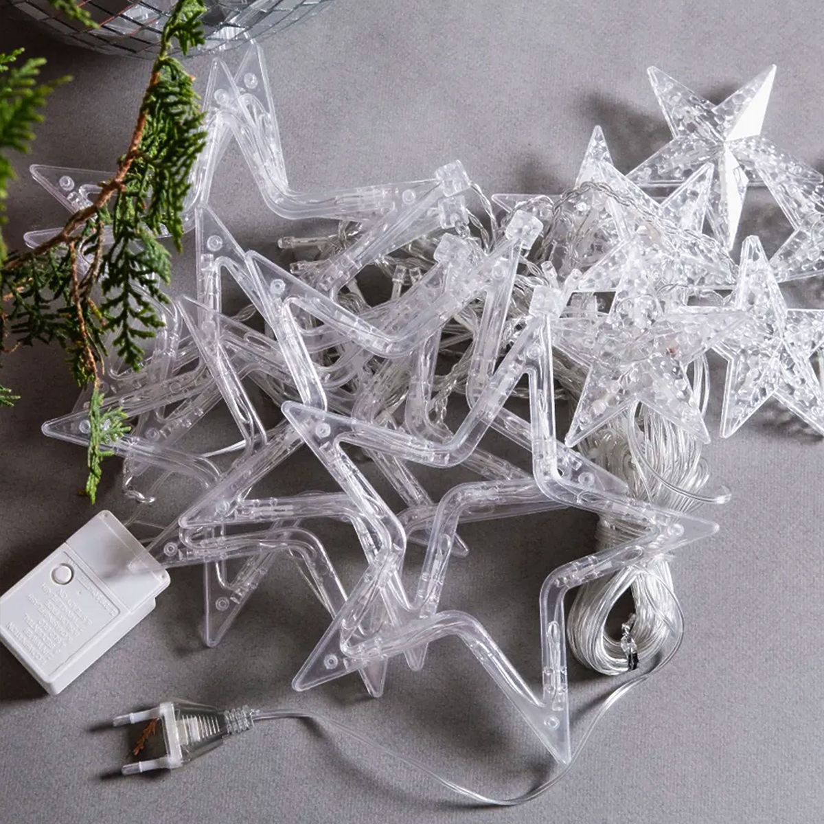 Komplet luči sestavlja 6 visečih LED zvezd velikosti 19 × 19 cm in 6 zvezdic velikosti 9 × 9 cm. Dolžina girlande je 3000 cm.