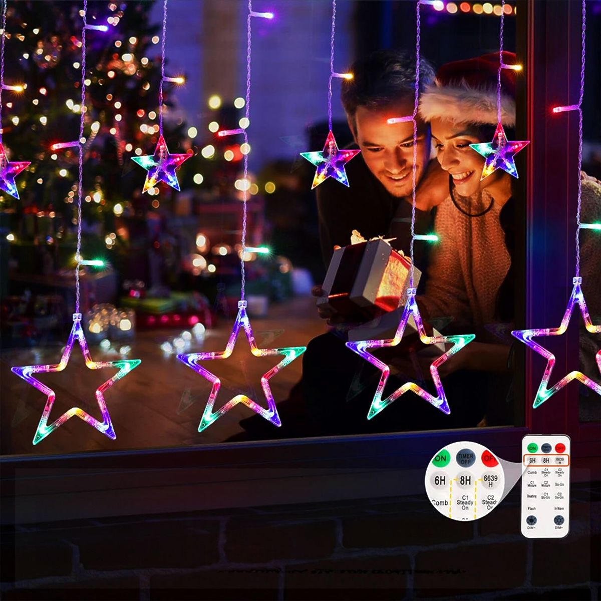 Komplet vključuje daljinski upravljalnik, ki omogoča vklop in izklop, osvetlitev ali zatemnitev ter načine utripanja/svetlobe celotne zavese.