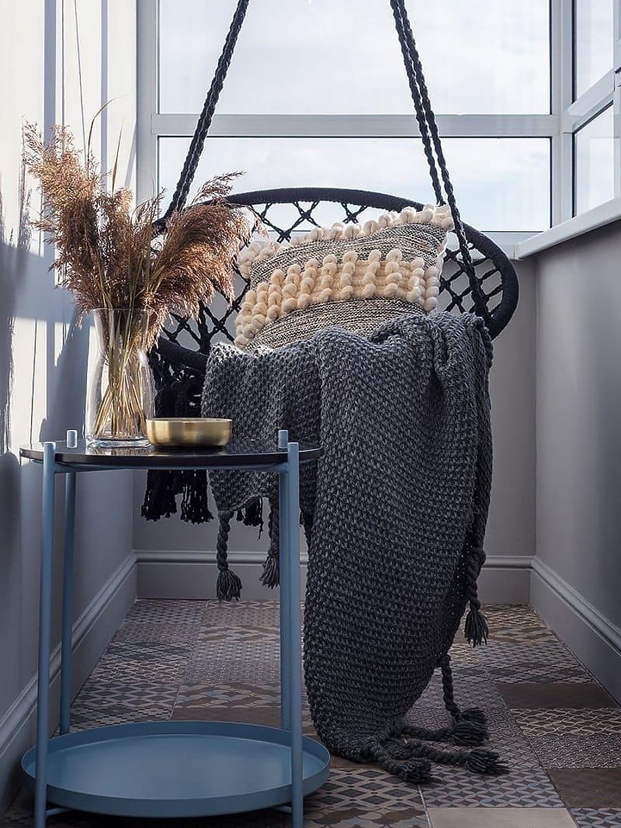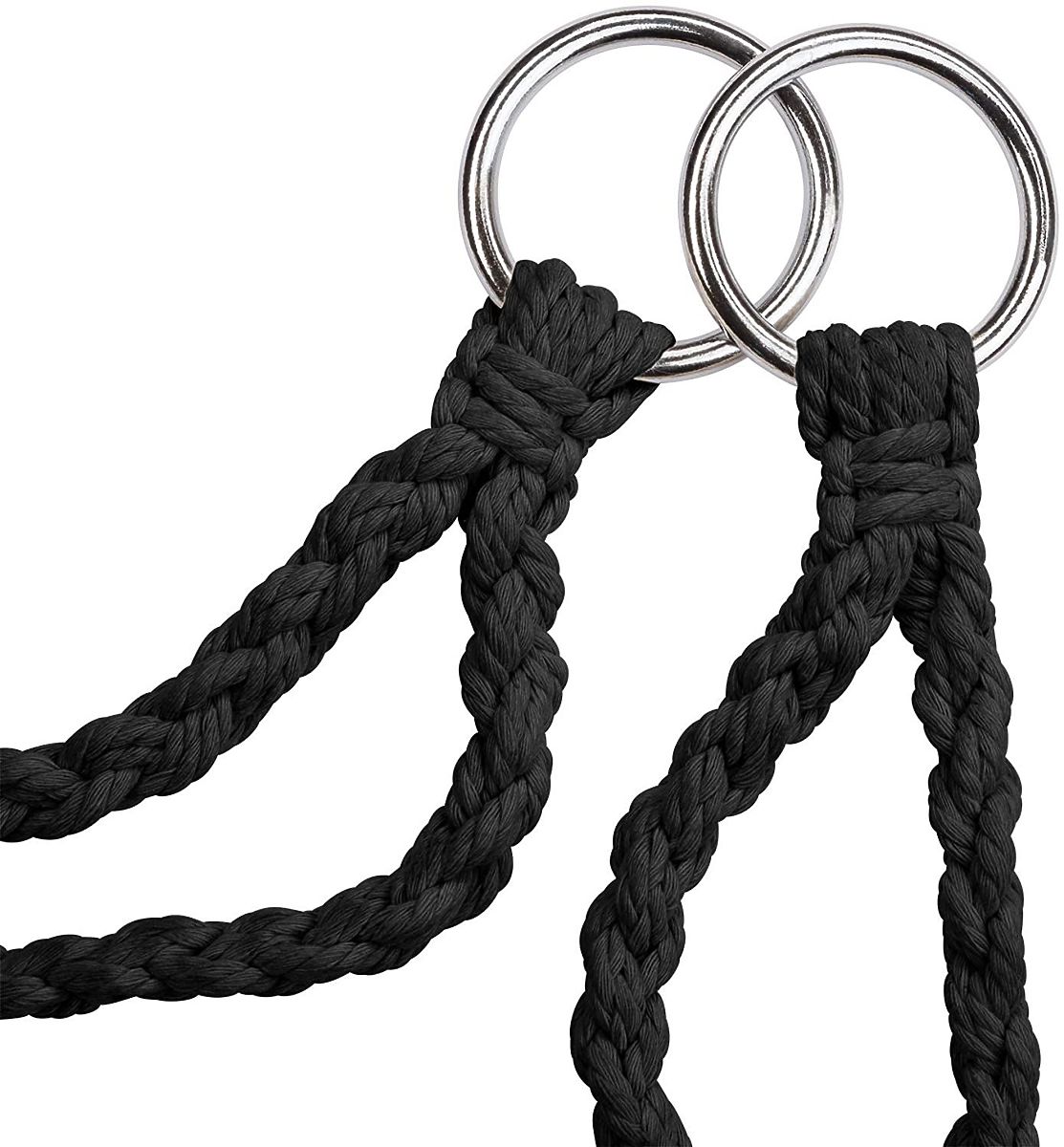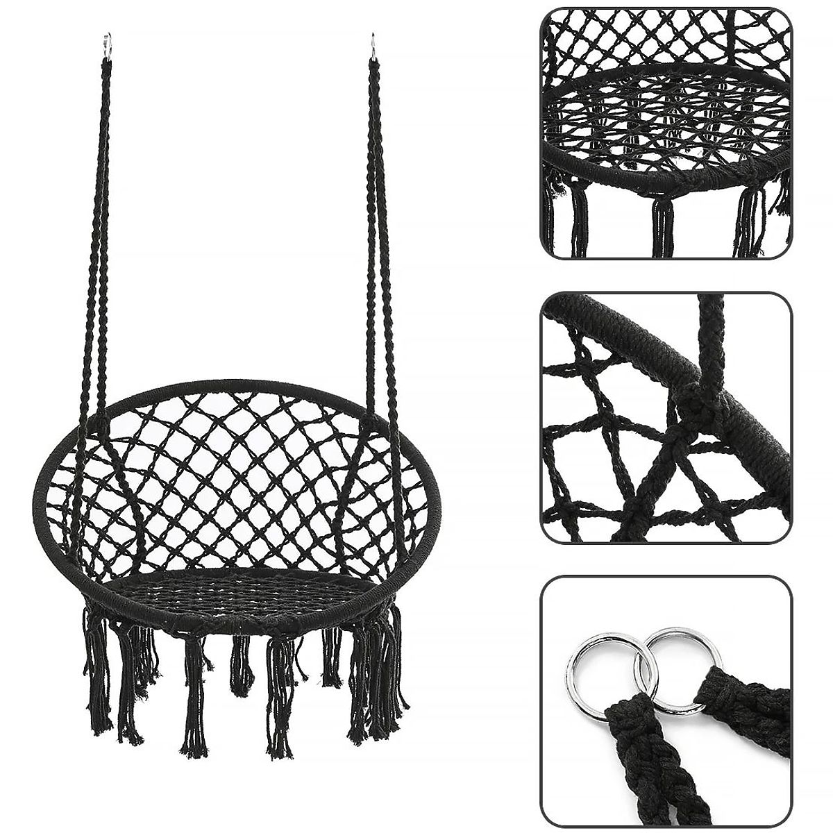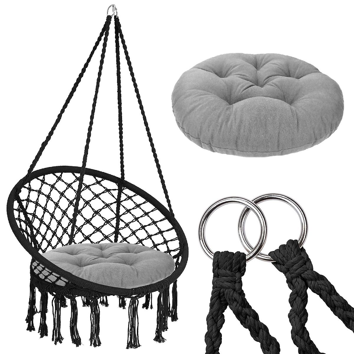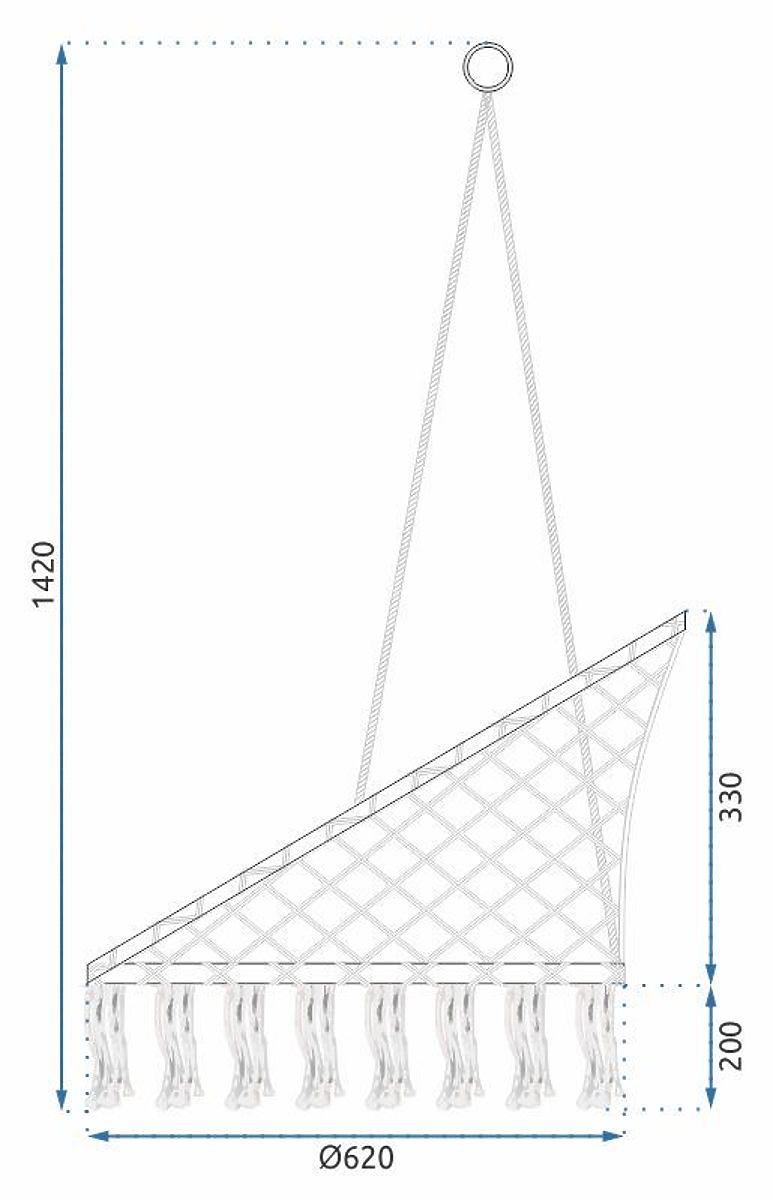 Zelo udoben kos pohištva, ki bo polepšal sprostitev na vrtu, terasi ali doma. Gugalnica je zasnovana tako, da je sedenje čim bolj prijetno – visok naslon omogoča udobno sedenje ali ležanje in počitek. Visokokakovostna viseča gugalnica v boho slogu je izdelana iz 2 kovinskih obročev, mehkih blazin in trpežne vrvi v obliki pletenine. Naslon je opremljen s 4 ločenimi vrvmi, ki omogočajo obešanje na en ali dva kavlja.
