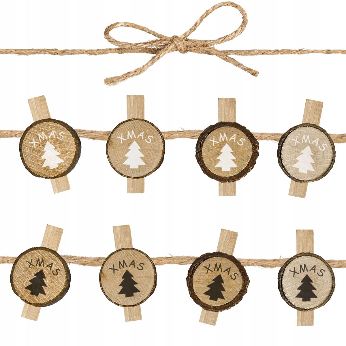 Set osmih lesenih klešč z motivom drevesa in napisom XMAS je majhna podrobnost, ki lahko popolnoma spremeni značaj božičnih okraskov. Naravni les v kombinaciji z rustikalno izvedbo ustvarja okras, poln topline in udobja, ki se popolnoma prilega božičnemu vzdušju. Klešče so dolge 5 cm in so bile izdelane s poudarkom na vsakem detajlu, kar omogoča njihovo večkratno uporabo v prihodnjih sezonah.