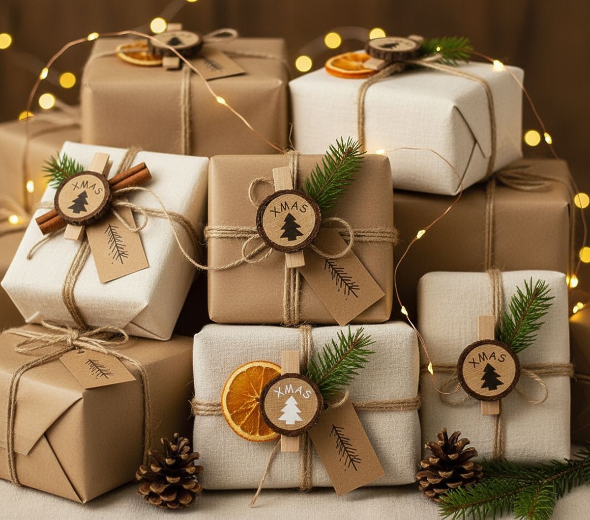 Njihova uporaba je zelo široka – uporabne so pri zavijanju daril, kjer lepo povezujejo etikete in trakove, pa tudi v adventnem koledarju za pripenjanje majhnih paketkov ali številk dni. Lahko jih uporabite tudi kot majhen okras na mizi, na primer za prtičke ali imenske kartice gostov, ter jih vključite v drevo, vence ali girlande. Tako en izdelek omogoča ustvarjanje številnih edinstvenih aranžmajev, ki v hišo prinašajo čarobno vzdušje.