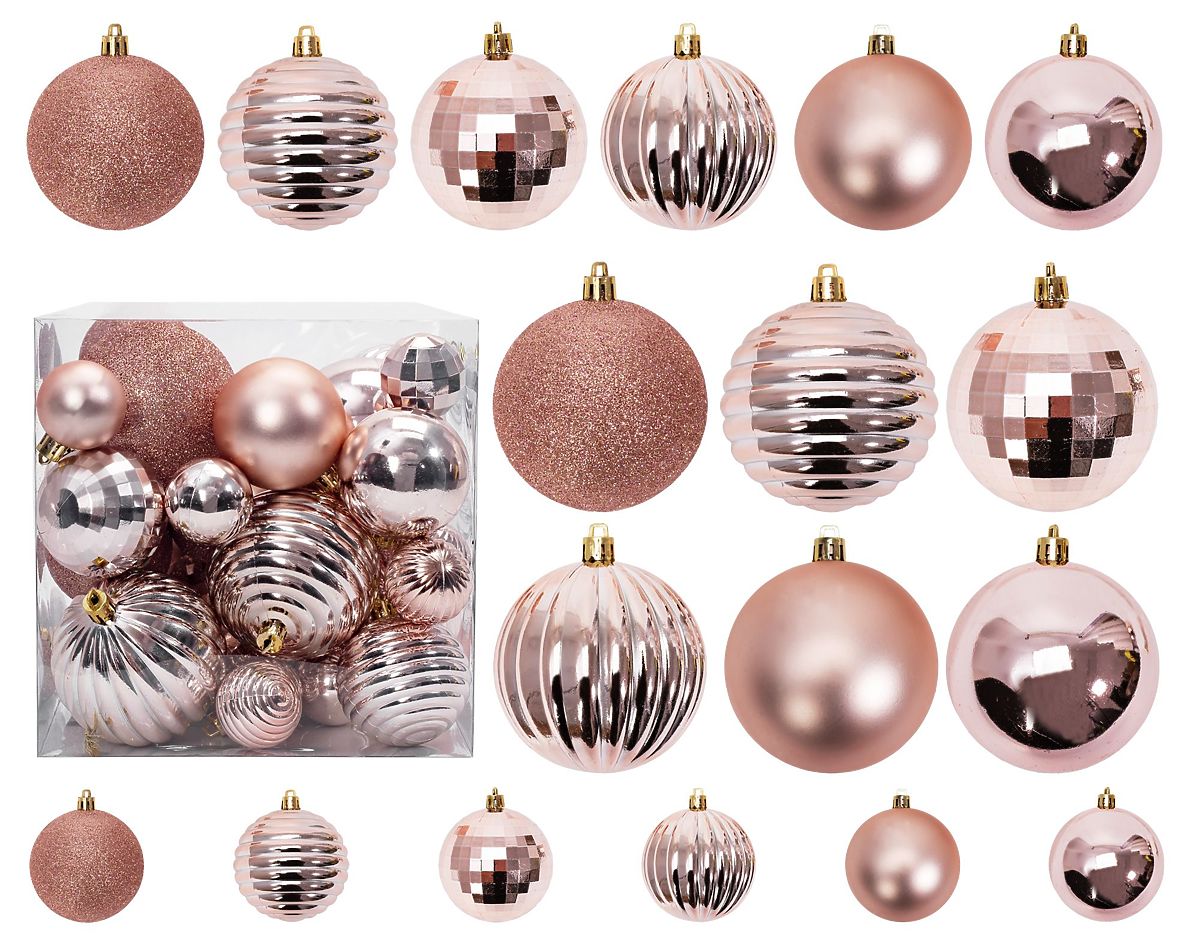 BOŽIČNE KROGLE ROŽNATO-ZLATE 36 KOSOV 311433B