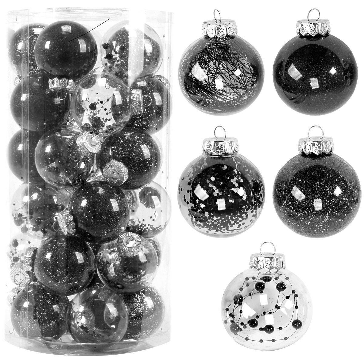 Predstavljamo vam komplet božičnih krogel iz plastike z različnimi površinskimi obdelavami, ki bodo obogatile videz vašega božičnega drevesa. Krogle izgledajo odlično na drevesu in so odporne proti razbitju, kar vam omogoča, da praznike preživite v miru brez skrbi za božične okraske. Ustvarite vzdušje božičnega čarobnega vzdušja, ki ga bodo občutili vsi.