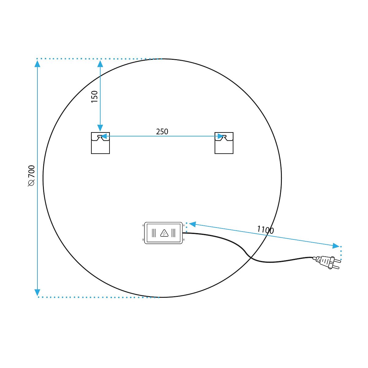 Okroglo ogledalo z LED osvetlitvijo je odlična izbira za tiste, ki cenijo udobje pri uporabi in moderen dizajn. Ogledalo je izdelano iz najkakovostnejših materialov, odlično se predstavlja in je zelo odporno. Ponuja tri z dotikom spremenljive barve LED svetlobe – toplo, nevtralno in hladno, ter funkcijo ogrevanja, ki preprečuje zameglitev površine. Na dotik občutljivo stikalo, nameščeno na površini ogledala, je ob aktivaciji funkcije osvetljeno modro. Napajalni kabel bele barve dolžine 110 cm.