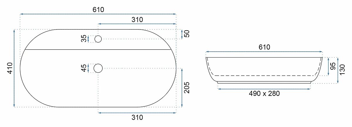 Umivalnik Rea Aura v zanimivi, eliptični obliki bo popolnoma dopolnil vsak sodoben interier. Prilagojen je za montažo na ploščo ali omarico. Umivalnik ni popolnoma pokrit, ima izrez na zadnji strani pri montažni odprtini za pipo.