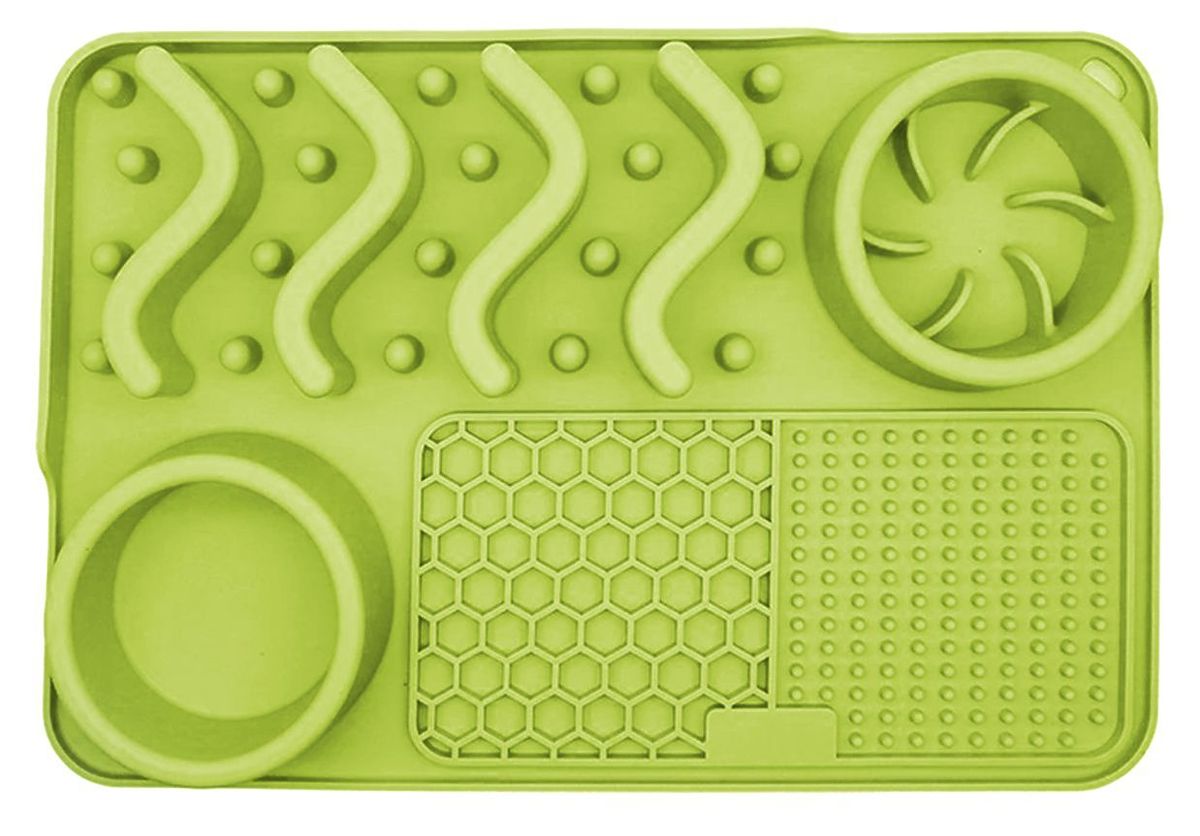 Podloga za pse za upočasnitev hrane je posebej zasnovan pripomoček, ki omogoča živalim počasnejše uživanje obrokov. Izdelana je iz visokokakovostnih materialov, ki so varni za pse in enostavni za čiščenje.