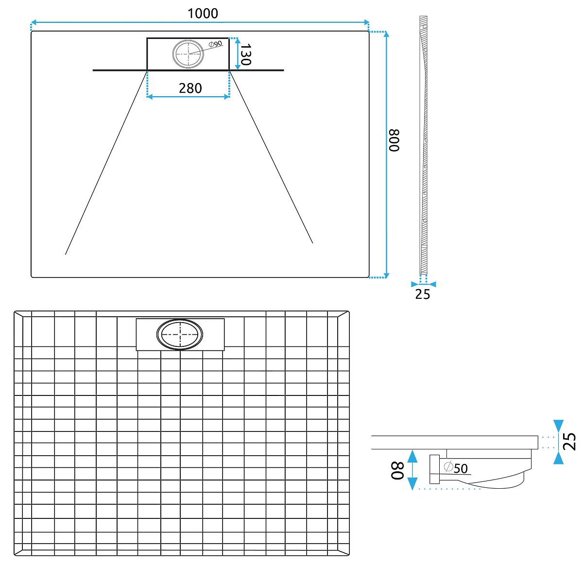 Tuš kad Bazalt Long White 80x100