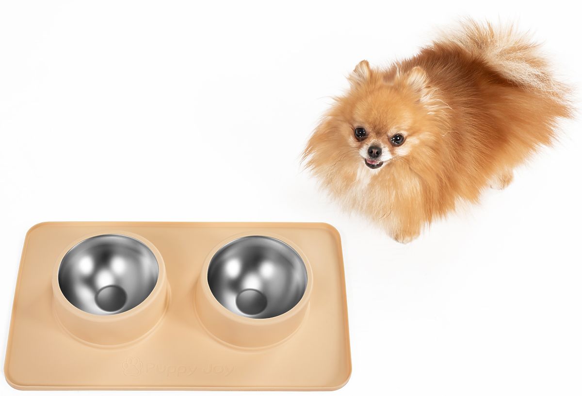 Kovinske Posode za Psa ali Mačko s Proti-drsno Podlogo Bež PJ-089