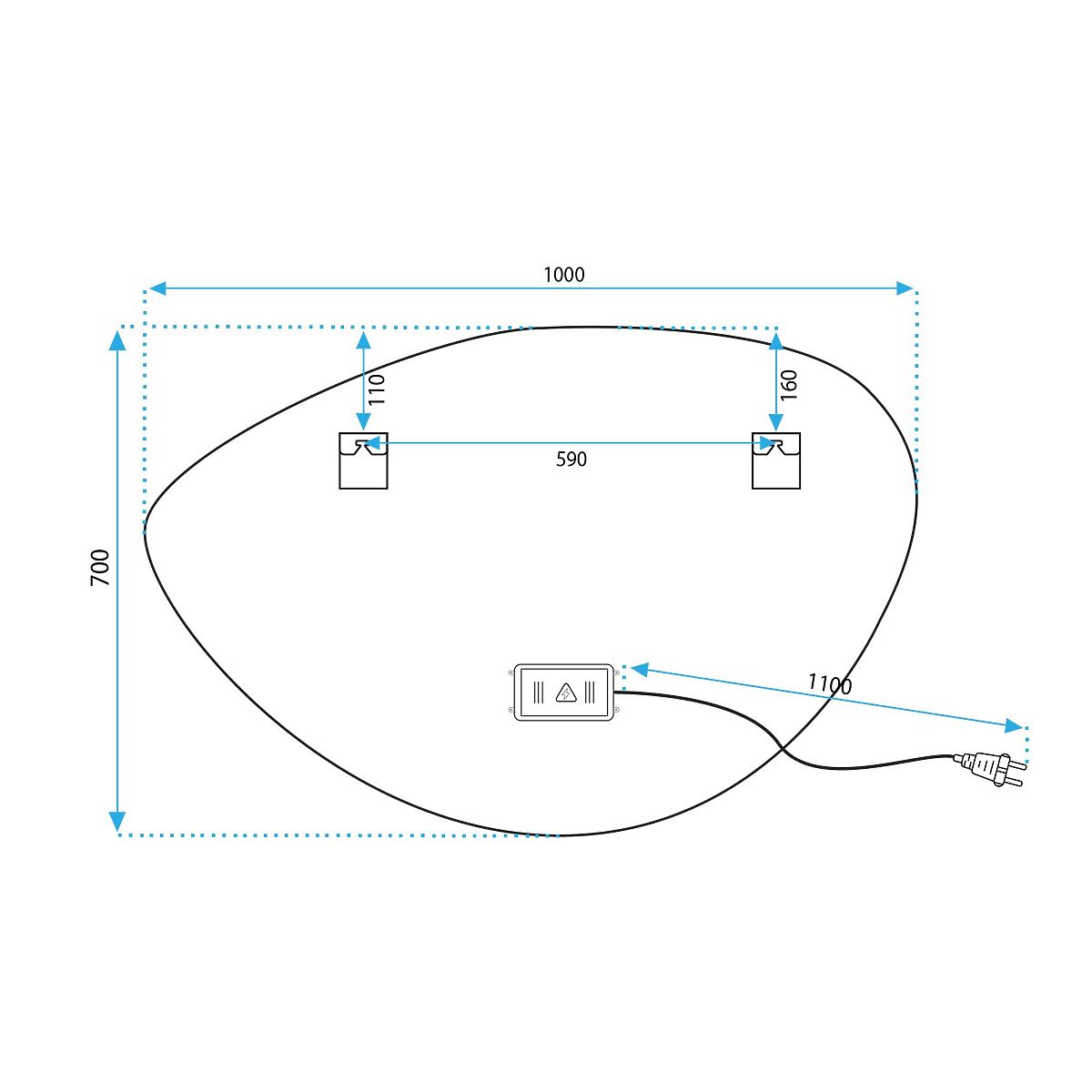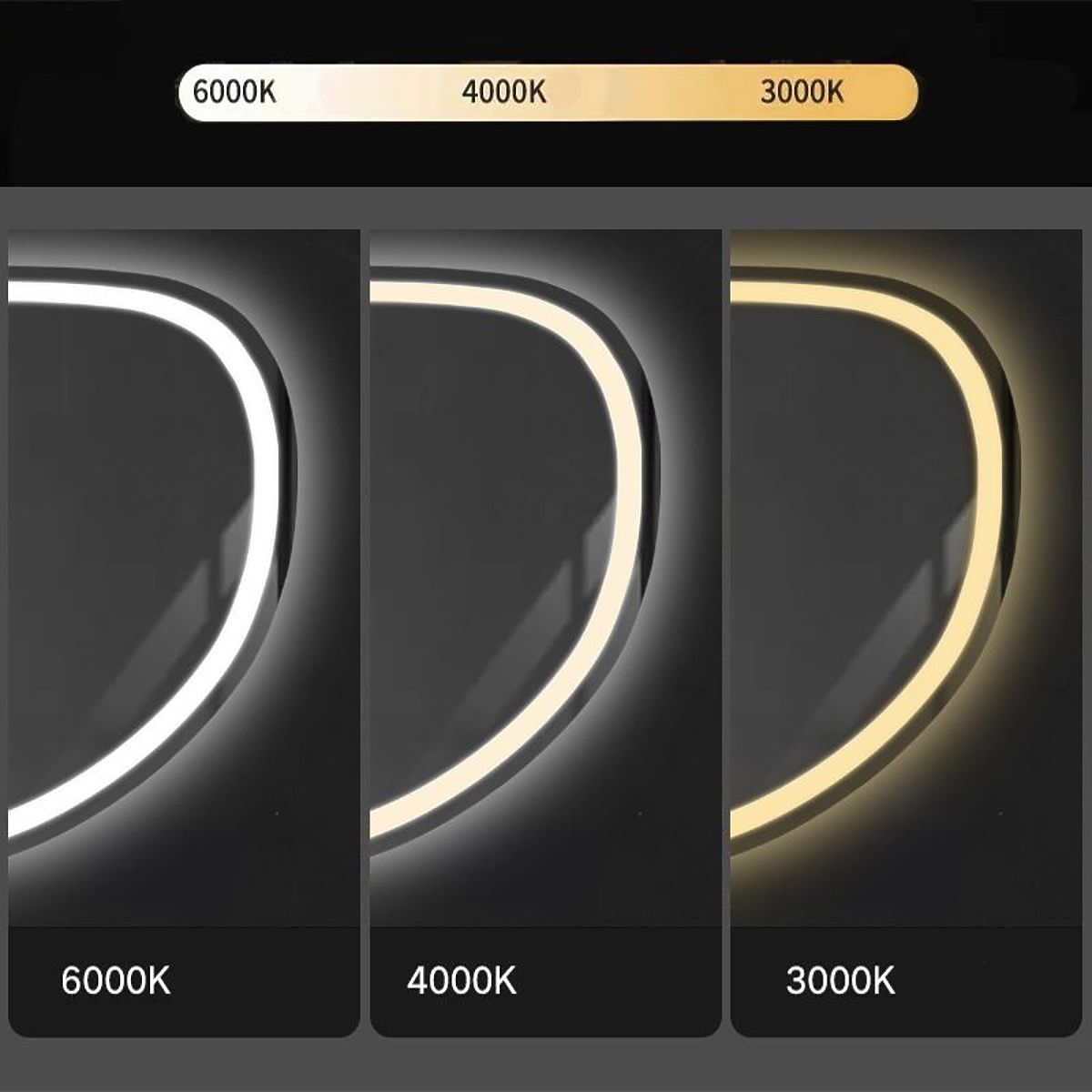 Asimetrično ogledalo z LED osvetlitvijo je odlična izbira za tiste, ki cenijo udobje pri uporabi in sodoben dizajn. Ogledalo je izdelano iz najkakovostnejših materialov, odlično se predstavlja in je zelo odporno. Ponuja tri barve LED svetlobe, ki jih je mogoče spreminjati z dotikom – toplo, nevtralno in hladno, ter funkcijo ogrevanja, ki preprečuje zameglitev površine. Napajalni kabel bele barve je dolg 110 cm.