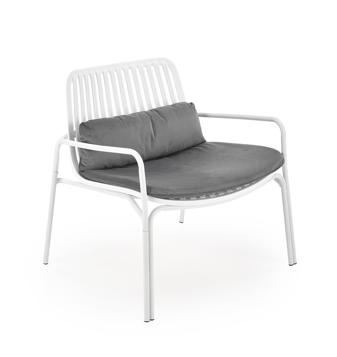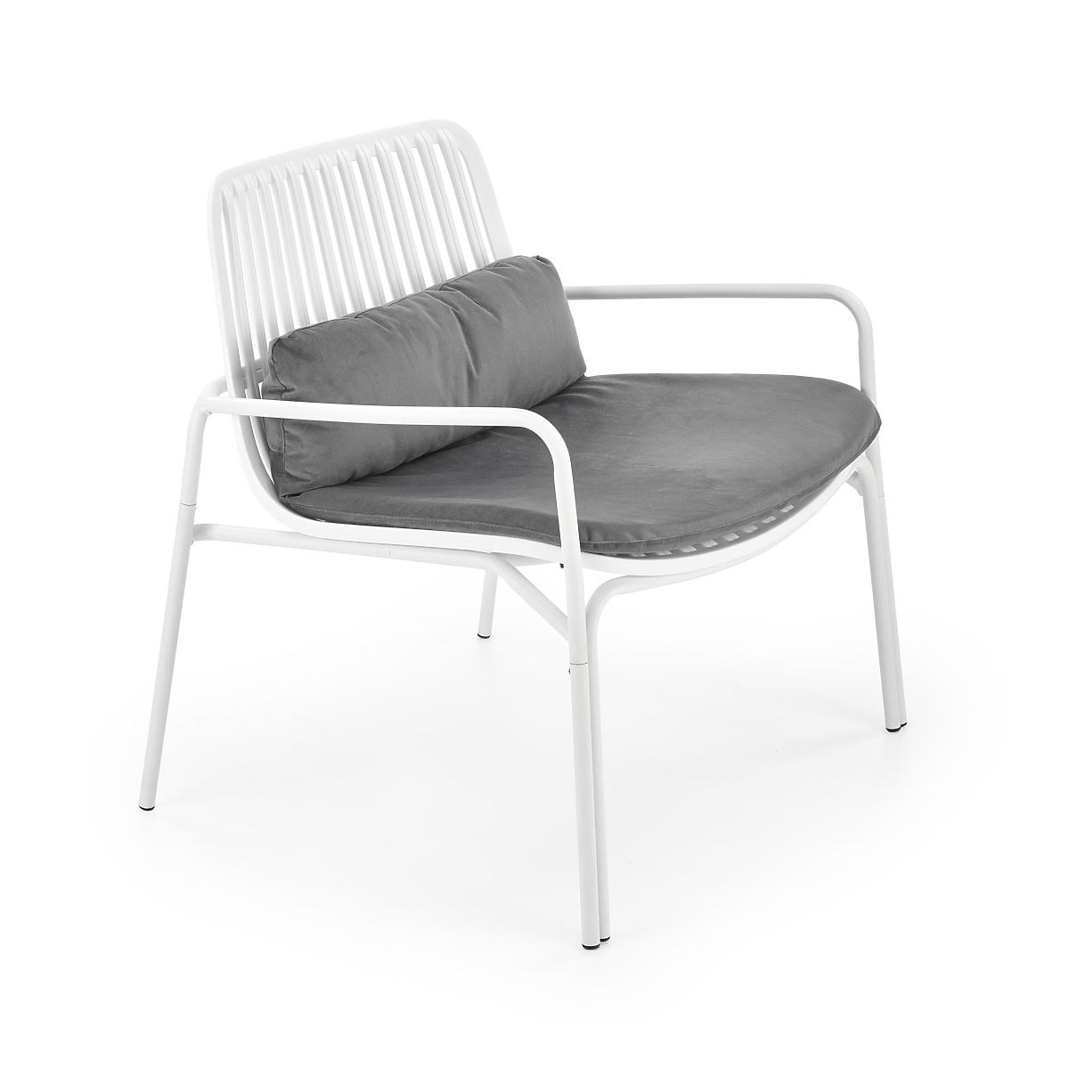 Relaksacijski stol MELBY z belim okvirjem in sivim oblazinjenjem. .. več