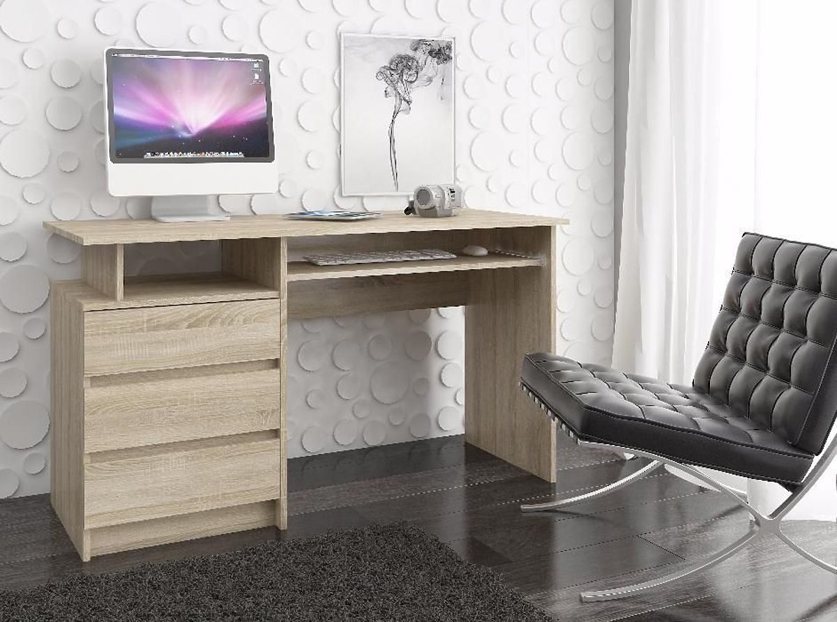 Hrast sonoma je barva, ki je že dolgo zelo priljubljena. Odlično se prilega vsakemu interierju, dobro se kombinira z dodatki v različnih barvah in je enostavna za čiščenje. Pozornost si zasluži pisalna miza, ki je bila zasnovana prav v tem univerzalnem odtenku. Izdelek je bil ustvarjen z mislijo na opremljanje pisarne, študentske sobe ali domače delovne sobe - vsak prostor, kjer se nahaja računalnik. Prosto stoječa pisalna miza CLP v svetli barvi bo zagotovo prijetno presenetila z visoko kakovostjo in izjemno skrbno obdelavo. Izdelek se ponaša s trdno konstrukcijo, zaradi česar je zelo odporen. Predali, s katerimi je pohištvo opremljeno, so prostorni, zato lahko sprejmejo veliko pisarniških potrebščin, potrebnih pri delu z računalnikom. Dimenzije pohištva so 135 cm x 77 cm x 60 cm.