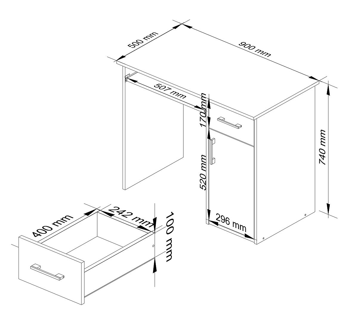 Pisalna miza iz laminirane plošče z ABS robovi in izvlečno poličko za tipkovnico. .. več