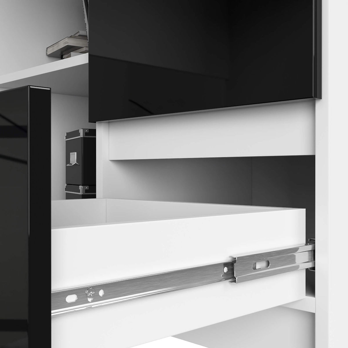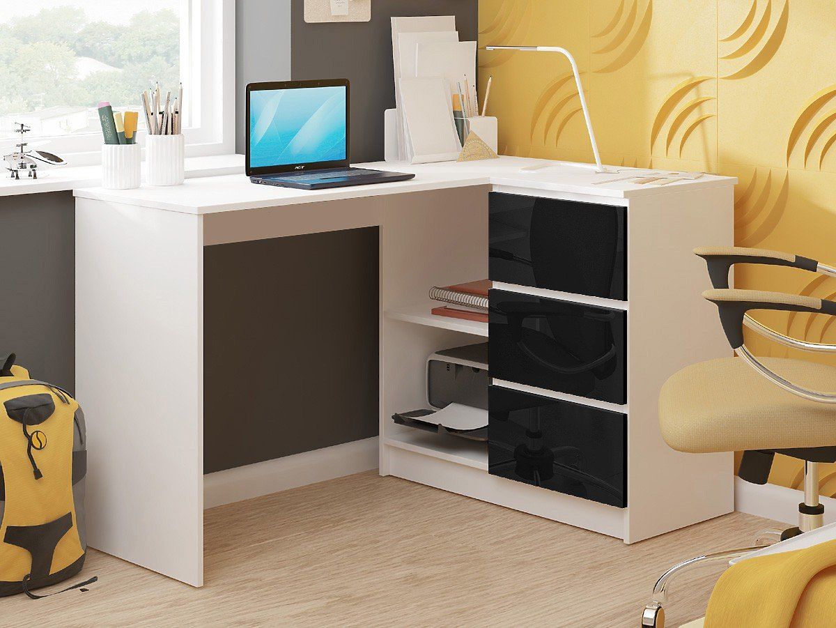 Lukahome.si » Mize in klubske mizice / Pisalne mize / KOTNI PISALNA MIZA B16 124 cm DESNA 3 PREDALI PK BELA / ČRNA VISOKI SIJAJ