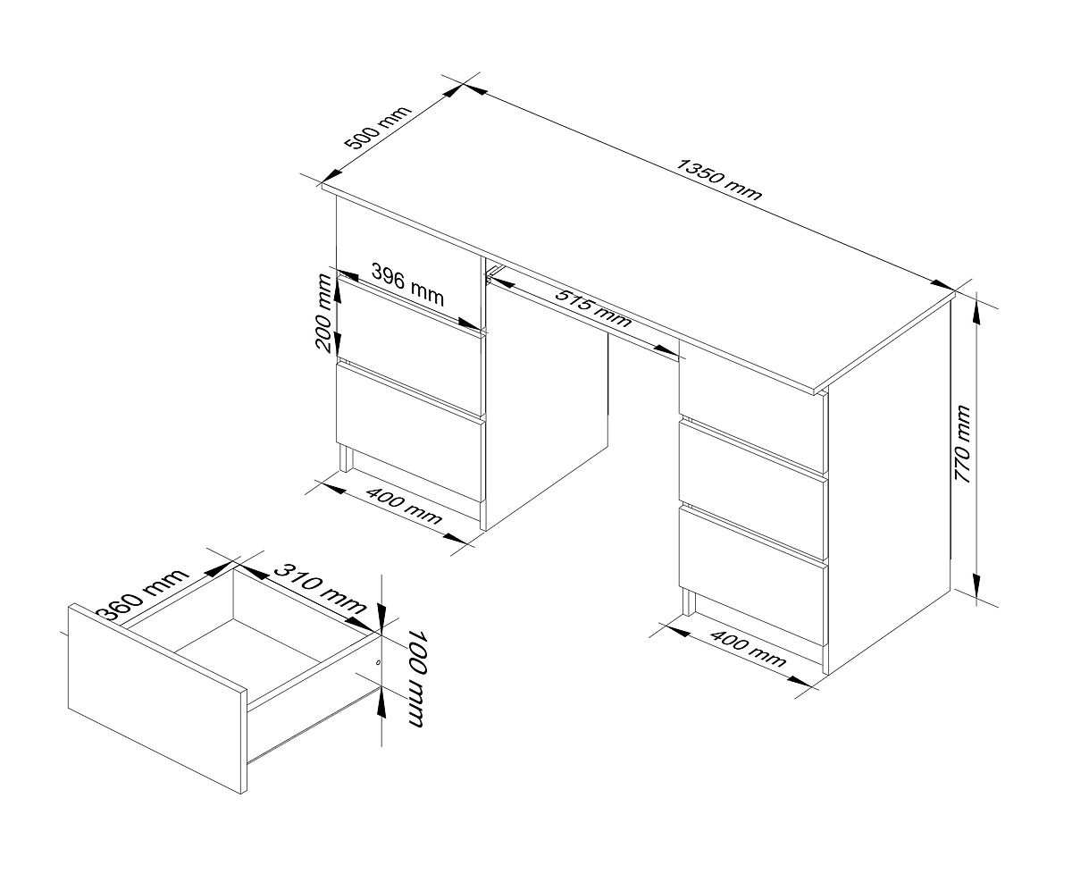 Računalniška miza A-11 z veliko delovno površino in šestimi predali. .. več