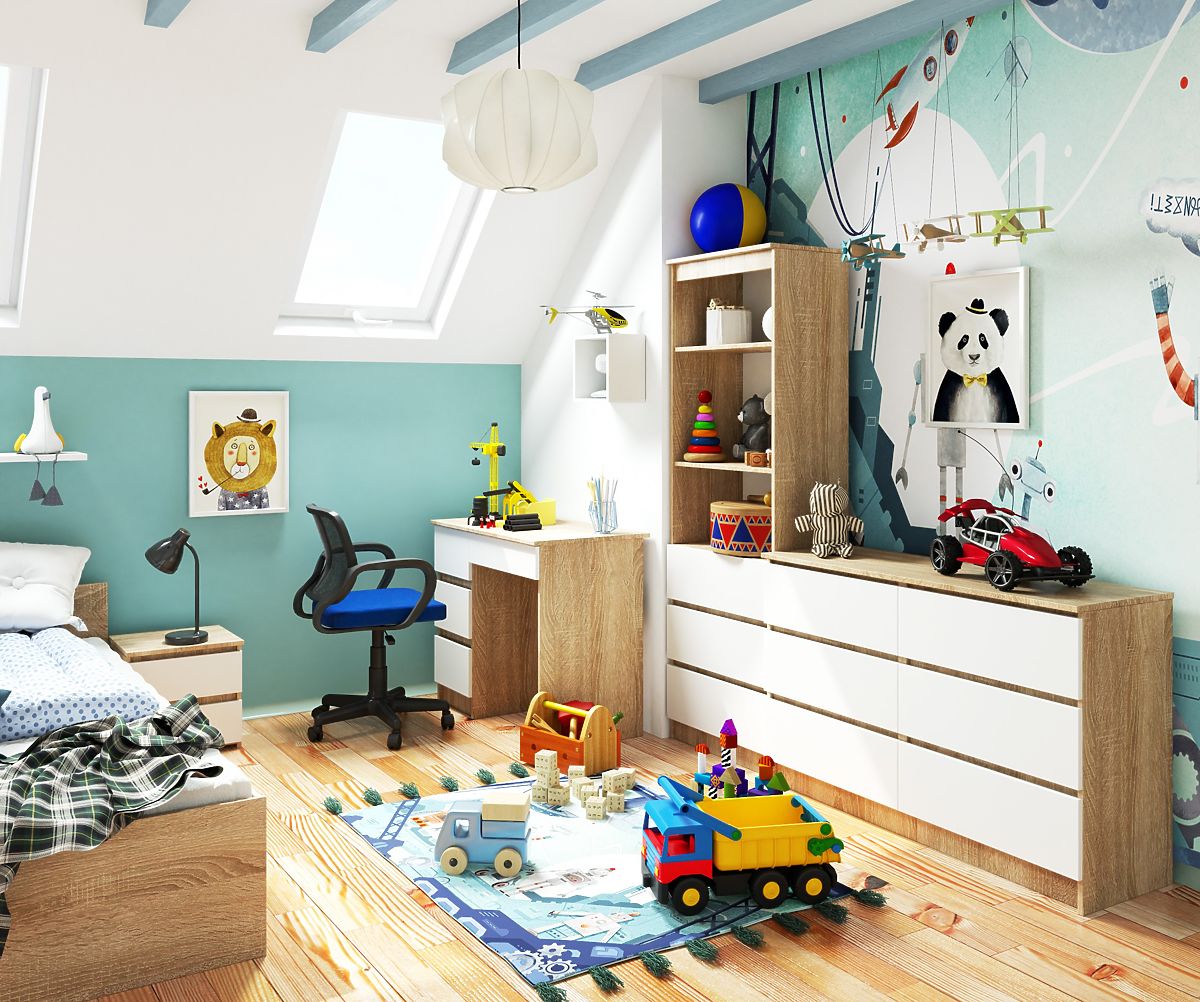 Levostranska računalniška miza v barvi hrasta sonoma z belimi čelnimi površinami in štirimi prostornimi predali. Odlično se prilega otroški, študentski sobi, pa tudi pisarni ali delovni sobi. Miza je del pohištvenega sistema CLP, zasnovana je tako, da se ujema z drugim pohištvom iz te serije. Tako lahko sobo opremite z različnim pohištvom, kot so regali ali komode, ki bodo oblikovno in barvno usklajeni. Ima sodoben dizajn, predali brez ročajev dodajajo pohištvu minimalističen čar. Ponuja veliko prostora za shranjevanje zahvaljujoč štirim predalom. Zaradi klasičnega videza ima miza univerzalen značaj in nikoli ne bo iz mode. Konstrukcija mize omogoča udobno in ergonomsko uporabo računalnika.