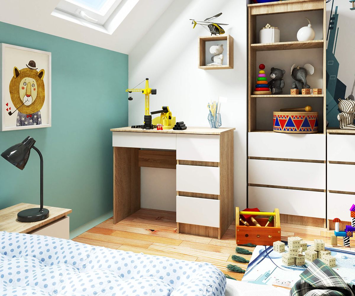 Pisalna miza A-7 s štirimi predali za mladino v sonomi in beli barvi. .. več