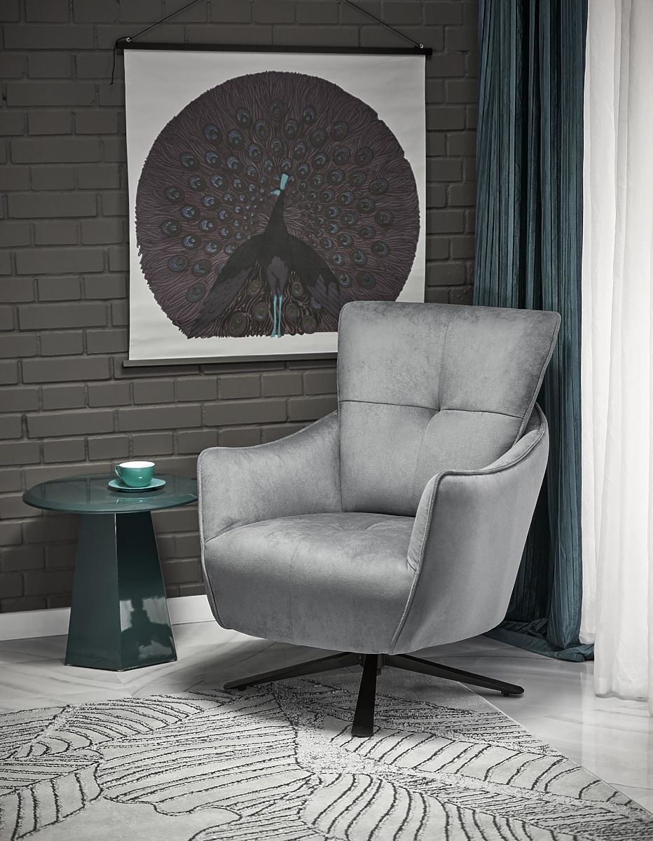 Počivalni stol SCAMPI s sivo tkanino in vrtljivo funkcijo. .. več