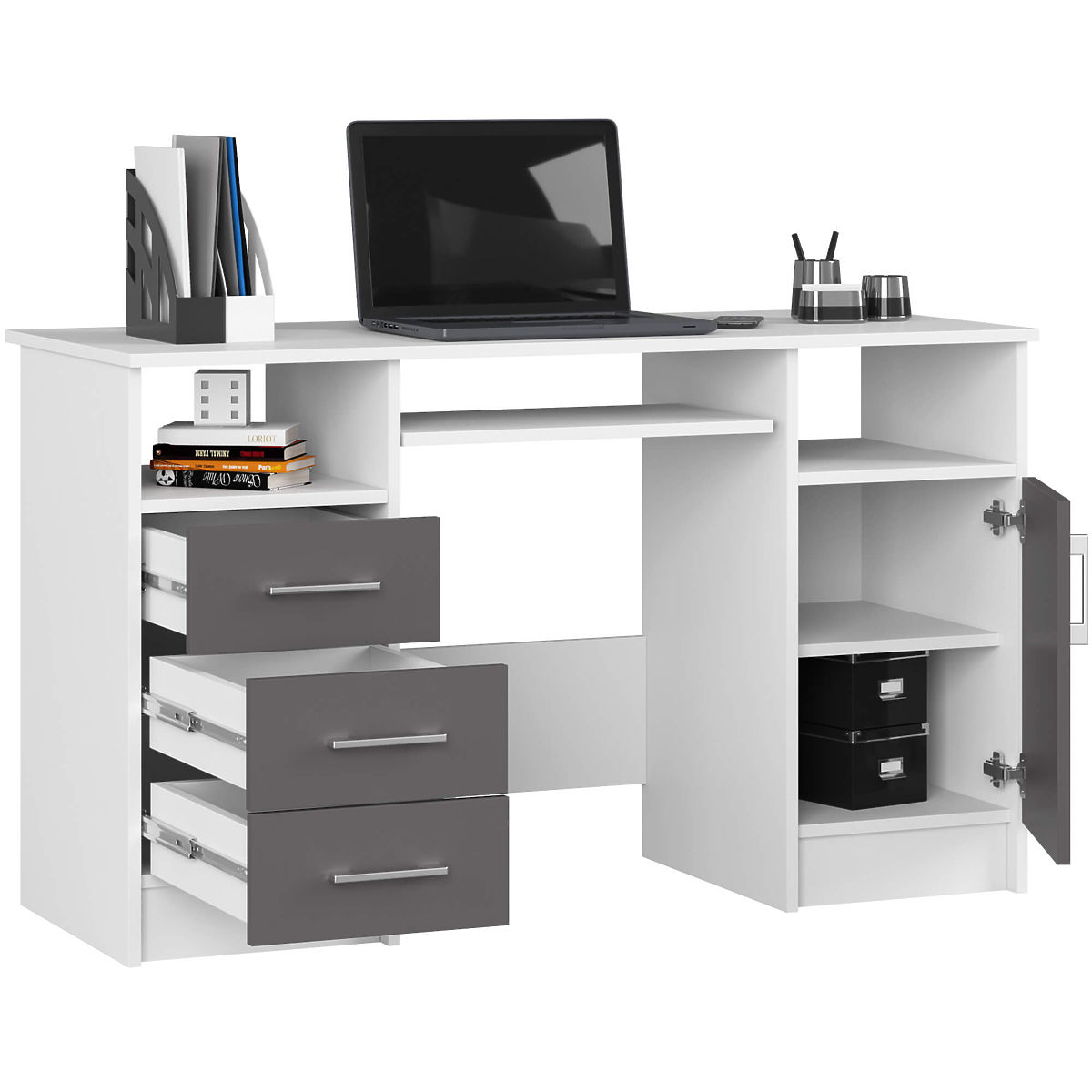 Računalniška miza ANA 124 cm v beli in sivi barvi z veliko prostora za delo. .. več